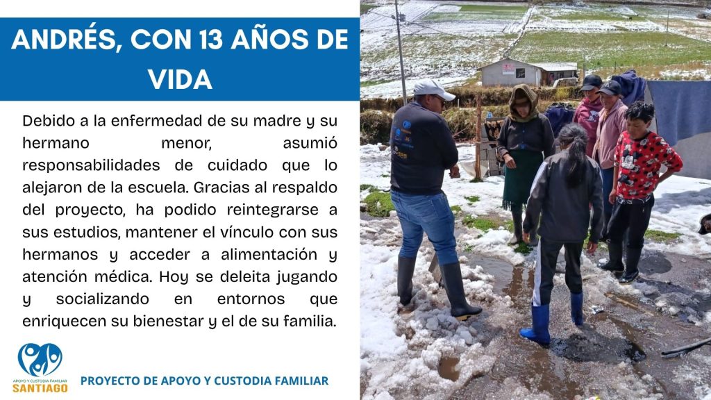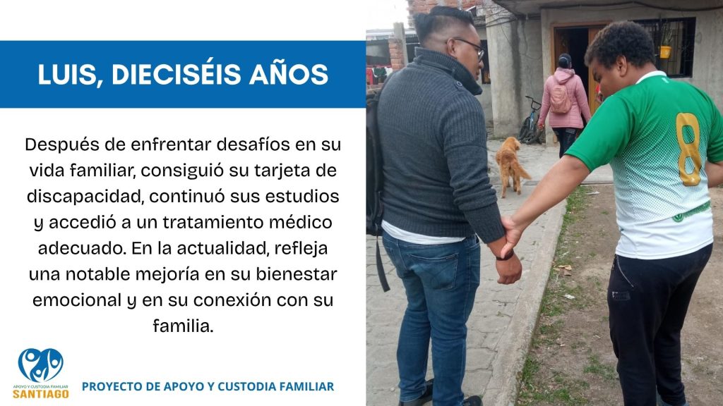 El Proyecto de Apoyo y Custodia Familiar acompaña a familias en situaciones de riesgo o vulnerabilodad para promover entornos protectores y evitar procesos de institucionalización, con la convicción de que el mejor lugar para que los niños, niñas y adolescentes se desarrollen, son sus entornos familiares . Su objetivo es fortalecer las capacidades familiares, asegurar la vinculación afectiva y apoyar en la restitución de derechos a través de intervención psicosocial, visitas domiciliarias y coordinación con el Sistema de Protección.